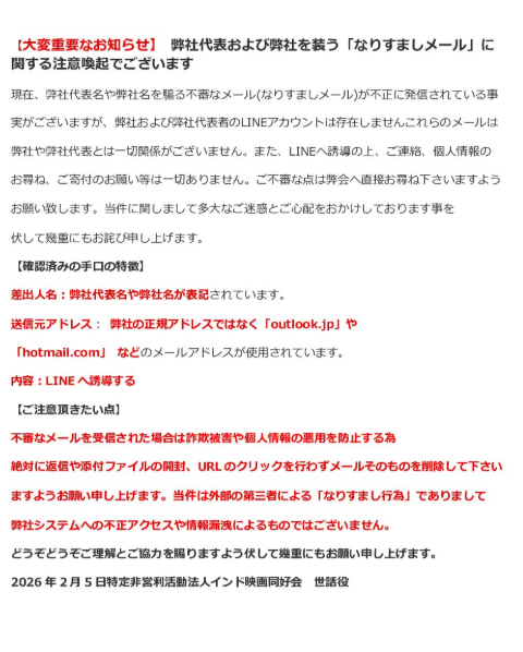 2026年2月8日 大変重要なお知らせーなりすましメールについて